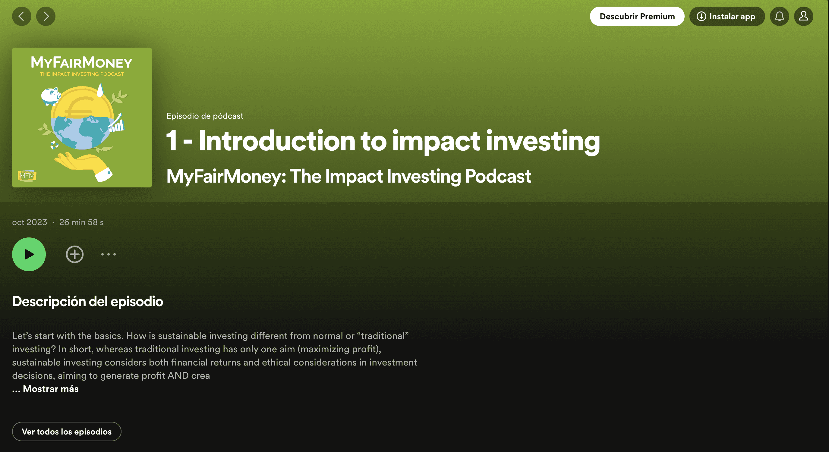 Cover picture for "My Fair Money" Podcast. A Podcast about an increasingly important topic such as sustainable investing.