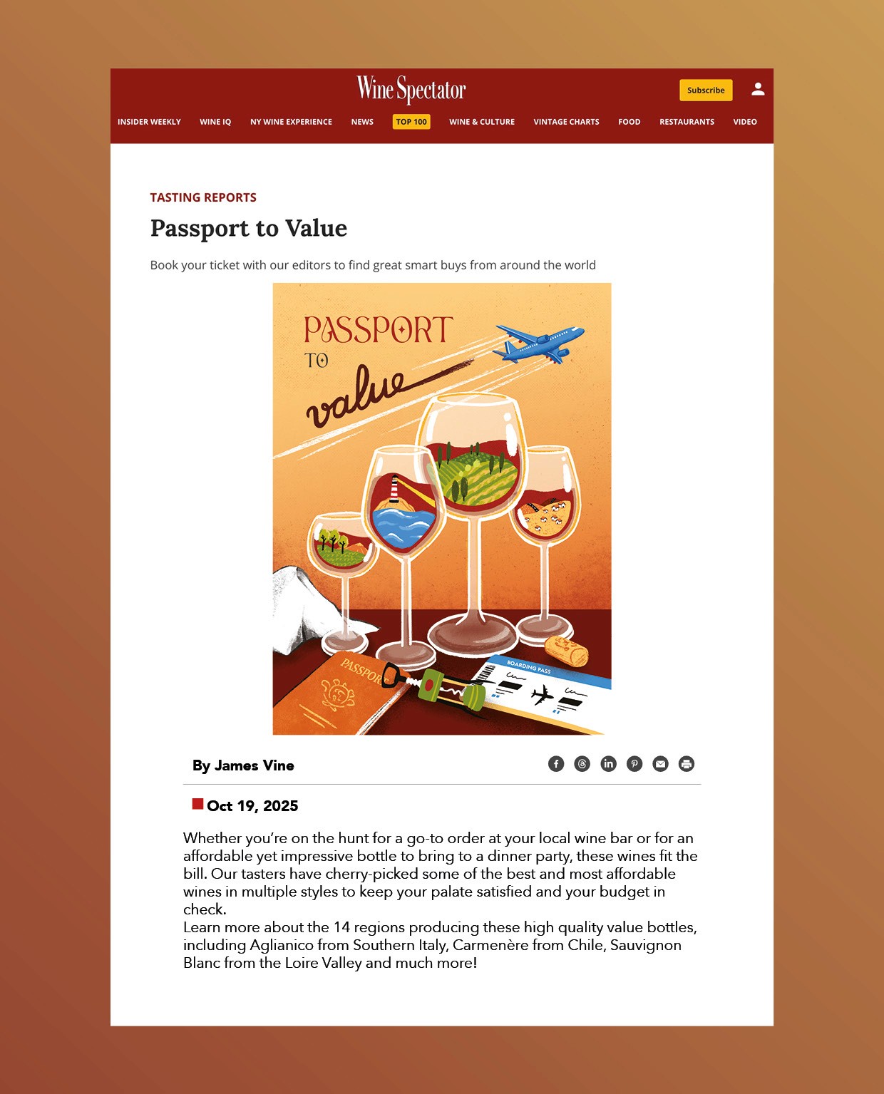 One of the projects of the Editorial Illustrator's Playbook Course hosted by Inkygoodness where the brief was to create a full page illustration to accompany a ficticious article for the Magazine Wine Spectator.